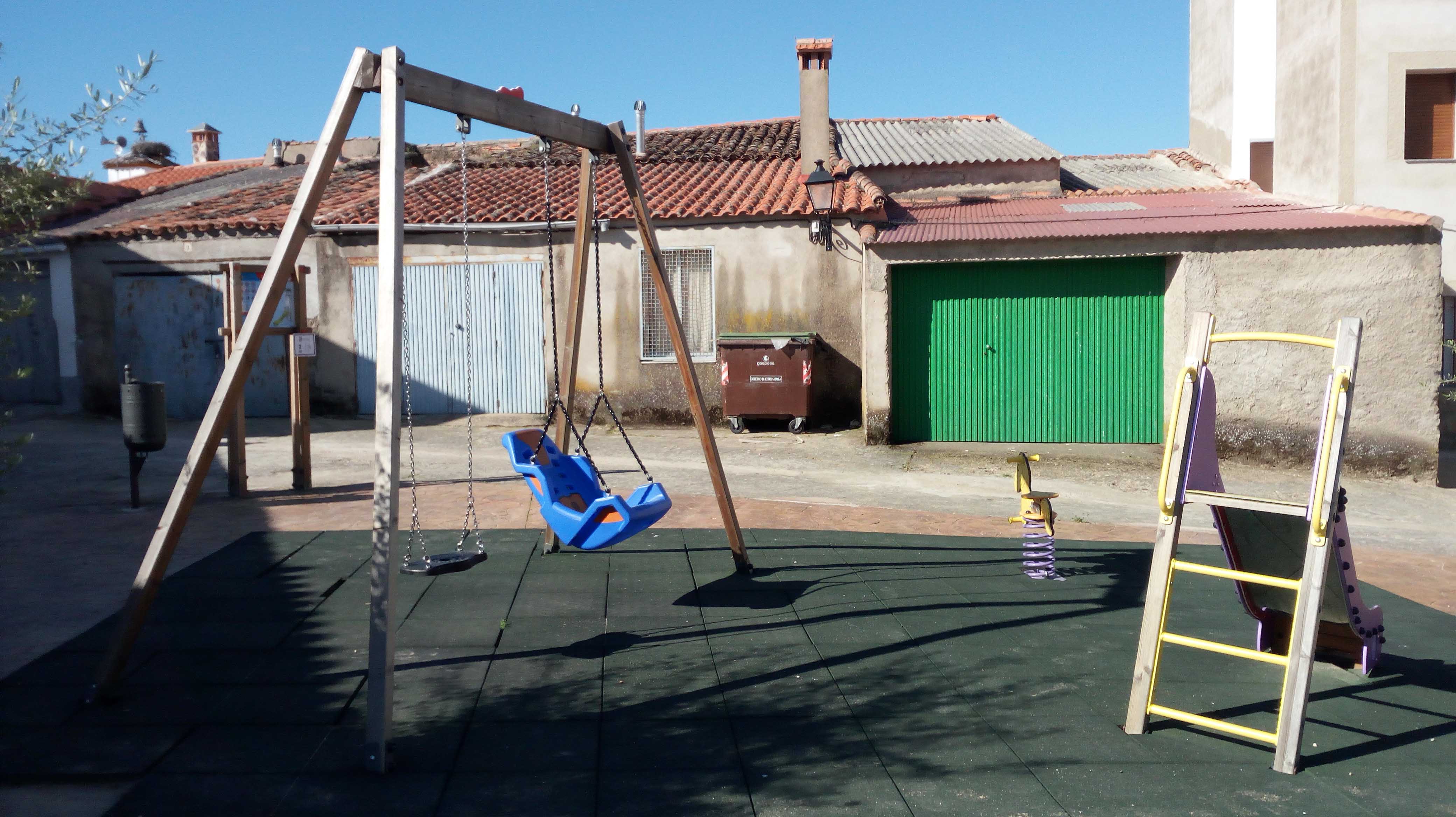 Parque para niños de 1 a 12 años dotado con tobogán y columpio adaptado, financiado por la Excma. Diputación de Cáceres.